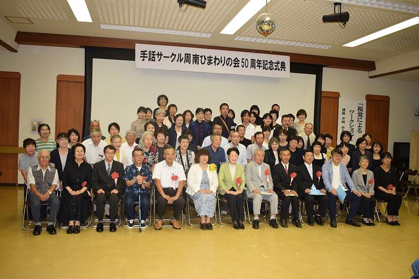 周南市の手話サークル周南ひまわりの会(西村陽子会長、39人)の50周年記念式典などが4日、70人が参加して市徳山社会福祉センターで開かれた。日本ろう者劇団顧問...