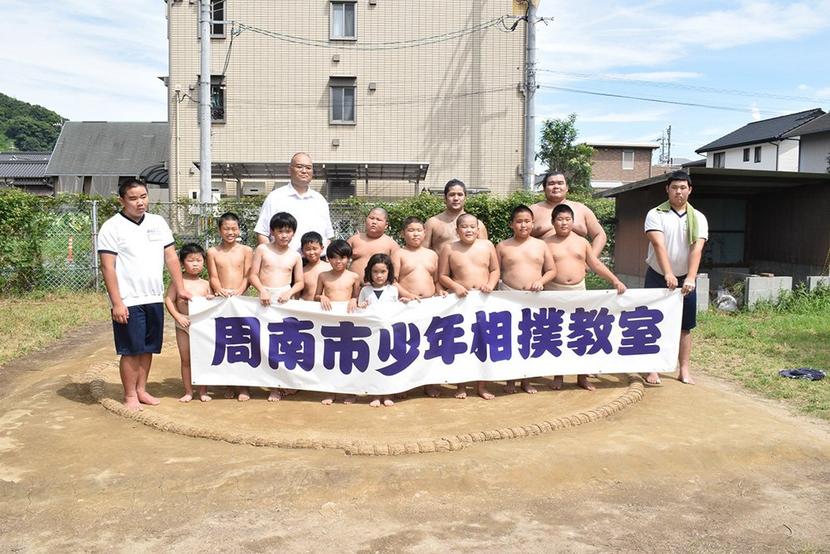 周南市少年相撲教室が10日、富田東小の土俵などで開かれ、小学生11人が大相撲の藤島部屋所属の清見潟親方(元武州山)と幕下の福山さん、三段目の常陸號(ひたちごう...