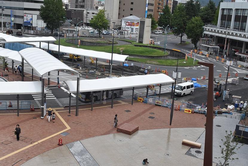 周南市の徳山駅北口駅前広場整備工事が予定の9月末から1カ月遅れるが10月末に完成し、11月2日に完成記念式典が開かれる。 北口広場は噴水のある水盤やバス乗...