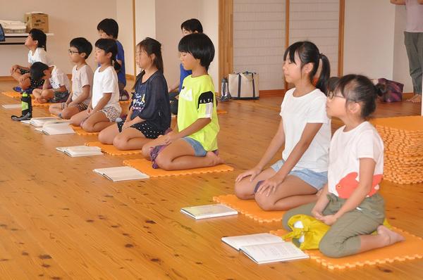 なつやすみこども座禅教室が20日、下松市切山の誓教寺(藤本晃住職)の仏教なんでもセンターで開かれ、小学生9人と保護者2人が参加、藤本竜子副住職(58)が静かに...