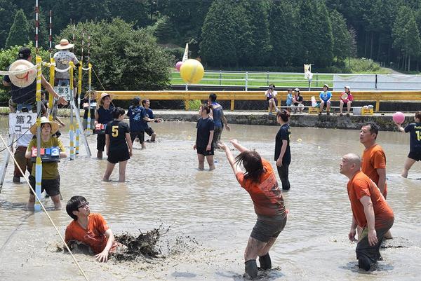 最後の泥んこ祭り 長穂の休耕田で熱戦