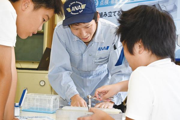 パイロットなど航空機を運航するために必要なスタッフが講師を務めるANAの航空教室「ANA Blue Academyミライをつく〜る」が19日、周南市の勝間小(...