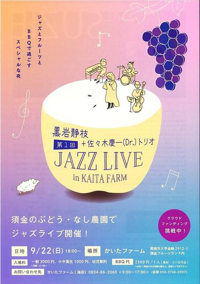 周南市の須金フルーツランドのかいたファームで22日(日)午後6時からバーベキューやフルーツを食べながら楽しむスペシャルなジャズライブが開かれる。ライブをきっか...
