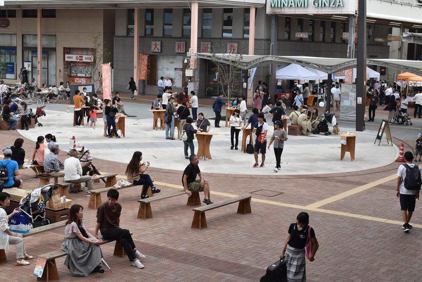 テーブルが並んだ広場