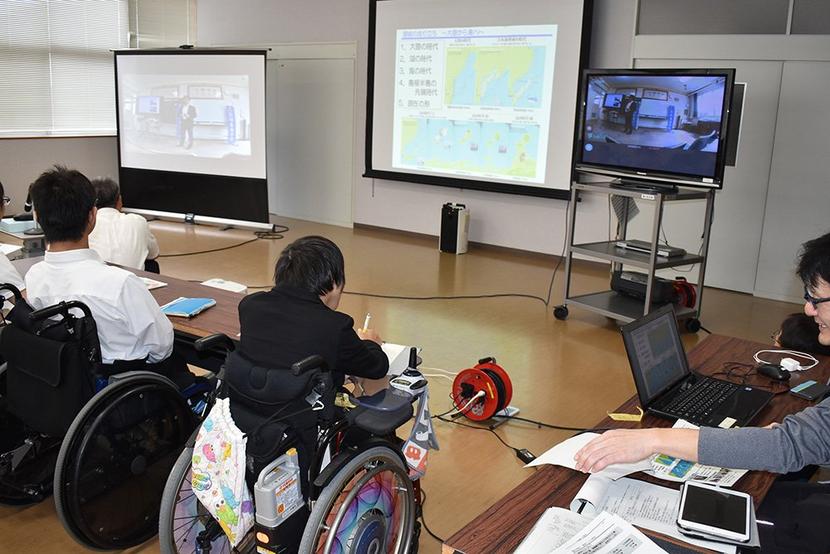 インターネットでパソコンをつないでスクリーンに動画などを映して学校にいながら社会見学ができる「遠隔社会見学」が8日、周南市の周南総合支援学校(小野倫代校長)で...