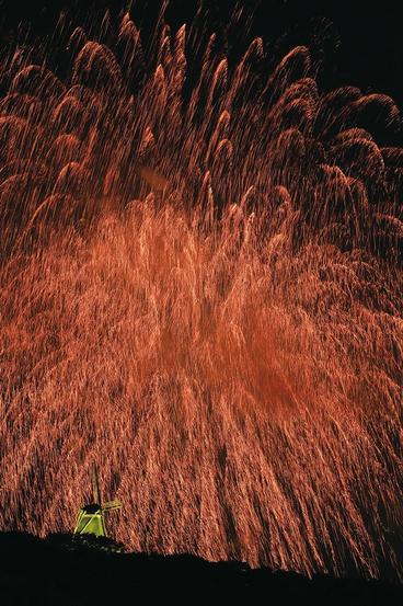 桑田さんはこれまでも優秀賞は受賞したことがあるが最優秀賞は始めて。最後に打ち上げられた大輪の花火が夜空いっぱいに広がった様子をゆめ風車とともにとらえた。