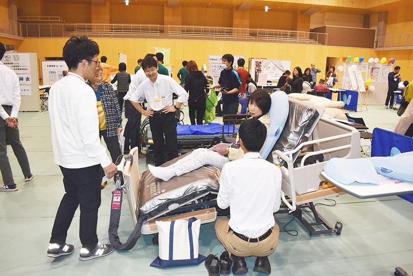 体験ブースは医療介護などの専門職が選んだ本を紹介する「“いきかた〟の本棚」▽「もしもの時、大切にしたいもの」をカードゲーム形式で見つける「もしバナゲーム」▽介護用ベッド、車いすなど福祉用具の展示▽薬剤師のお薬の相談、リハビリテーションや介護保険制度など17のブースが並び、スタンプラリーもあって参加者は次々に回って「勉強になった」と笑顔を見せていた。