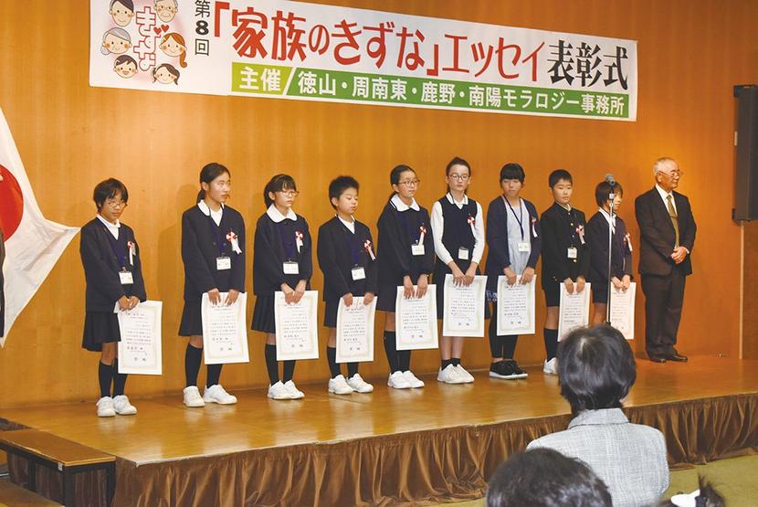 周南市の小学5年生から募集した第8回「家族のきずな」エッセイ(新周南新聞社など後援)の表彰式が24日、市徳山保健センターで開かれ、市長賞の徳山小の仲子結菜さん...