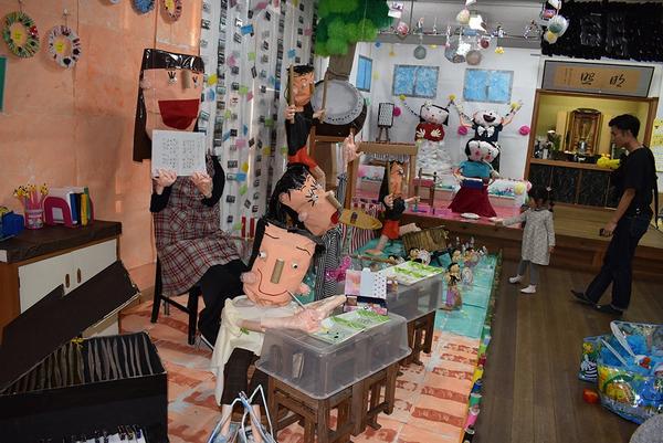 廃材で教室いっぱいに 明照幼で造形展・育友会バザー