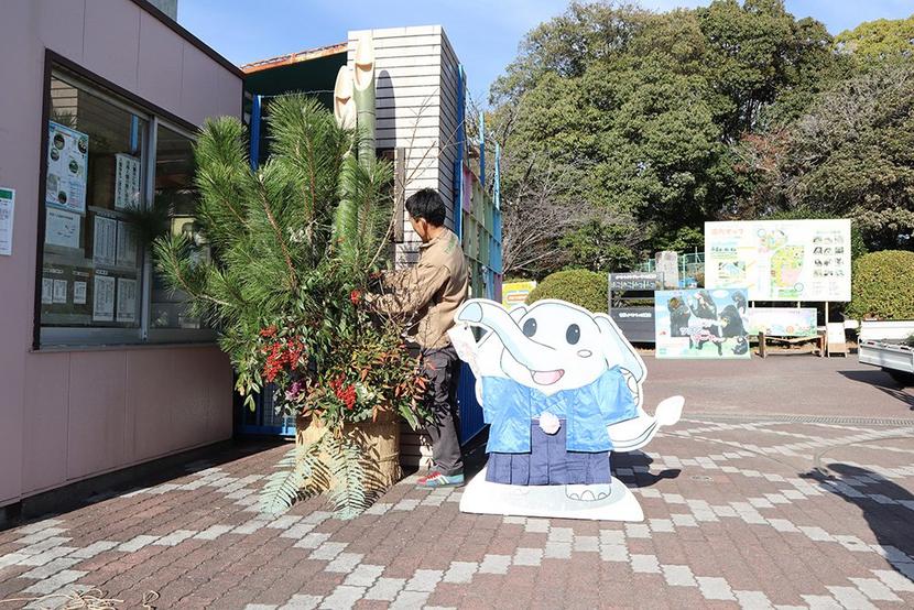 周南市の徳山動物園(磯部良治園長)の南園正門に13日、職員が手づくりした高さ2・7メートルの大門松が立てられた。 門松は直径10センチ以上もある立派な竹を...