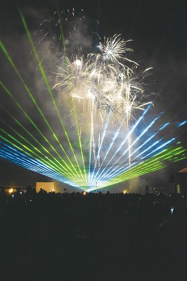 周南市鹿野で14日、かの冬花火「銀嶺の舞」があり、1万5千人が花火とレーザー光線と音楽の饗宴を楽しんだ。 実行委員会(岸田安義委員長)の主催。会場の鹿野総...