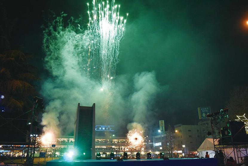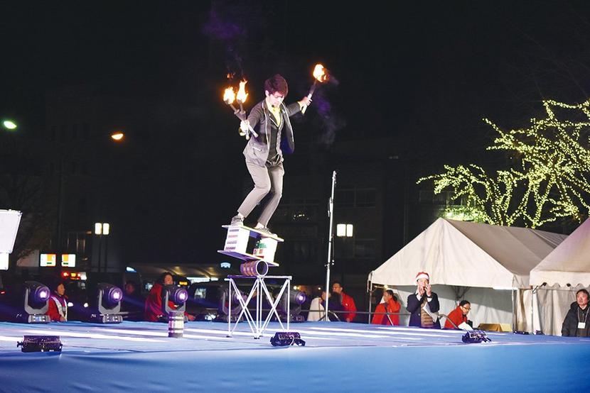 周南市の周南冬のツリーまつりの集中イベント「ファンタジックナイト」が21日夕、徳山駅前の歩行者天国になった御幸通や青空公園などで開かれ、アイドルグループなどが...