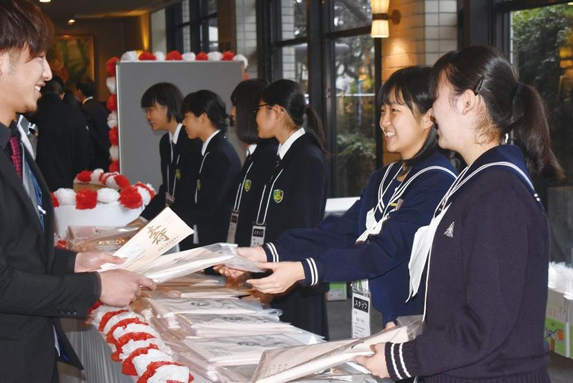同市の成人式は実行委員会(栗栖聖奈委員長、12人)が企画・運営し、当日は高校生ボランティア108人が受け付けやアトラクションの賞品配付に活躍した。ロビーや前庭には実行委がおみくじ、絵馬ブース、写真撮影用の看板なども用意して盛り上げた。