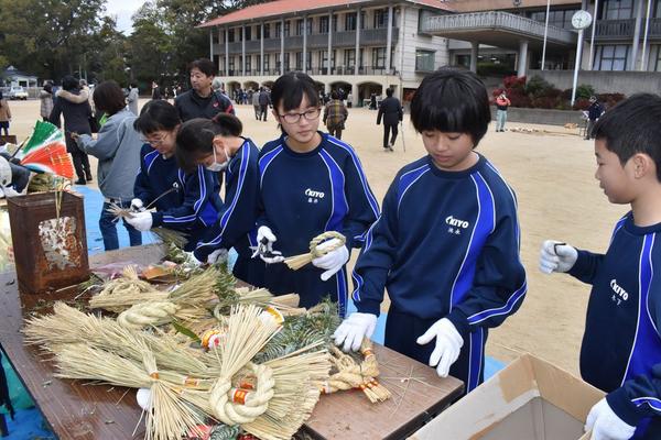 徳山小校区は岐陽中生も 正月飾りのどんど焼き