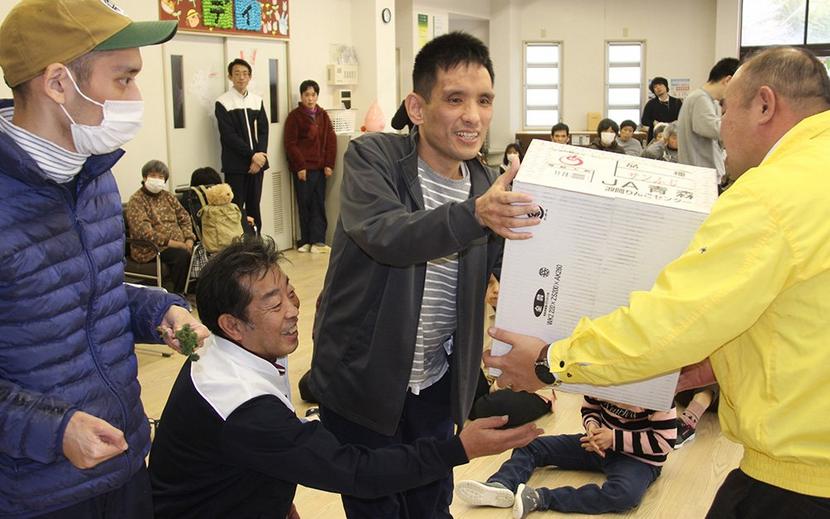 プレゼントを贈る清神幹事(右)