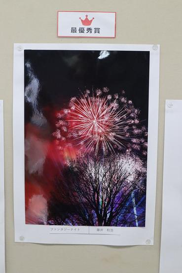 周南市の徳山駅の新幹線口1階のイベントスペース「ぞうさんの寄り道 やすむっちゃ」で8日、昨年12月14日の鹿野冬花火大会の「かの冬花火“銀嶺の舞〟フォトコンテ...