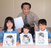卒園児の似顔絵描き40年に 愛隣幼児学園と平田保育園 漫画家の荻原さんが気さくに