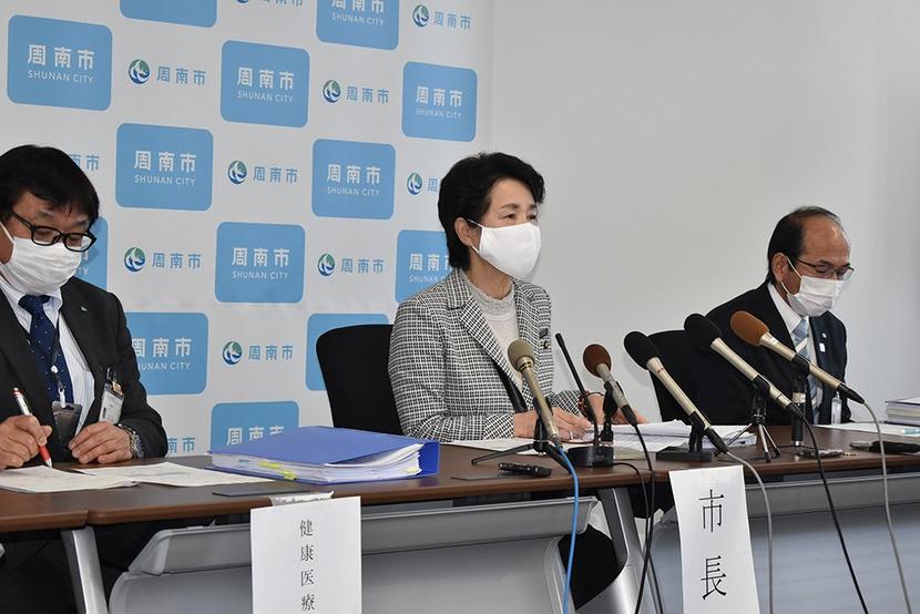 市長の記者会見で明らかになったが、市に対しては幹事会の前に市長に村岡嗣政知事から電話があった。クラスター(集団感染)の可能性があることから濃厚接触者として感染者が発生した会社の全員と感染者の家族全員のPCR検査をする意向であること、結果的には周南3市で足並みをそろえて休校になったが、小中学校を8日から開校するかどうかはその結果を待って決めてはどうかなどと話したという。