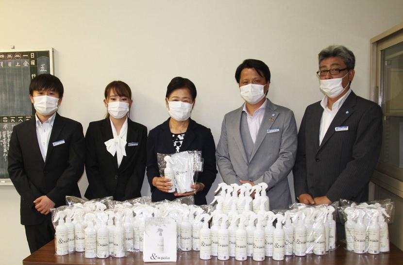 周南市須々万本郷の建設製造業、アイワテクノ(石田誠志社長)は19日、除菌・消臭水スプレー200本を光市教委に贈った。25日(月)から授業を再開する市内の小中学...