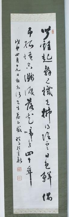 周南市鐘楼町の「和食処鐘楼亭」の田中豊治社長(72)が新南陽駅前の清水1丁目に高杉晋作など明治維新で活躍した長州藩士や長州出身の総理大臣の書を展示するギャラリーを開設した。書だけで20点近くが並んでいて関心を集めそうだ。