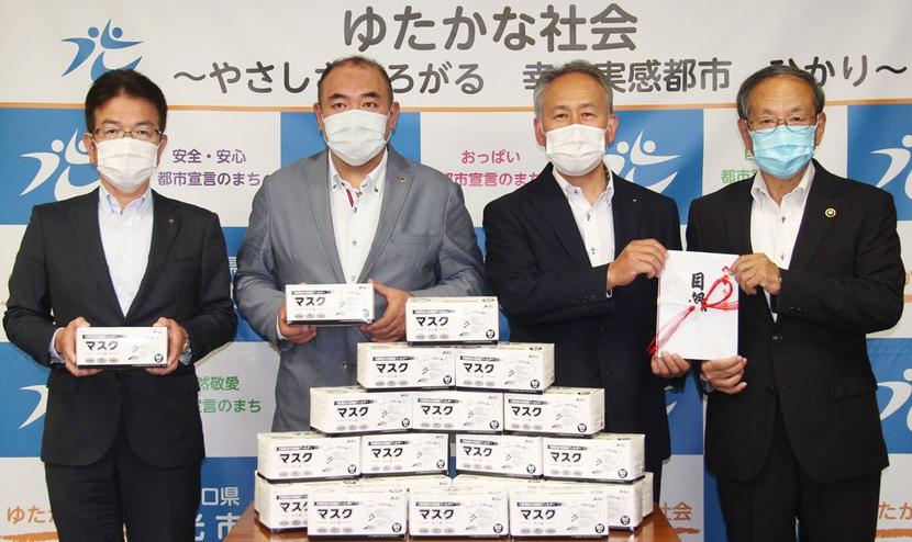 地域周南市光市の光ライオンズクラブ(古川雅之会長、42人)は14日、新型コロナウイルス感染症の防止対策に使ってほしいと、マスク1万枚を同市に寄付した。
