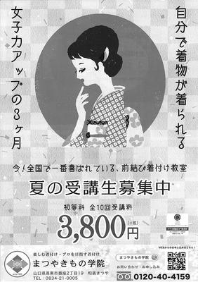 周南市銀座2丁目の和装まつやの「まつやきもの学院」が7月から始まる「前結び着付け教室」の受講者を募集している。毎週1回、10回の講座で自分で着物を着て出掛けら...