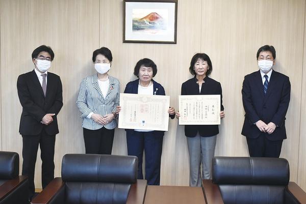 冨永さんに藍綬褒章伝達 中村さんに中四国局長表彰 行政相談委員の功績賛えて