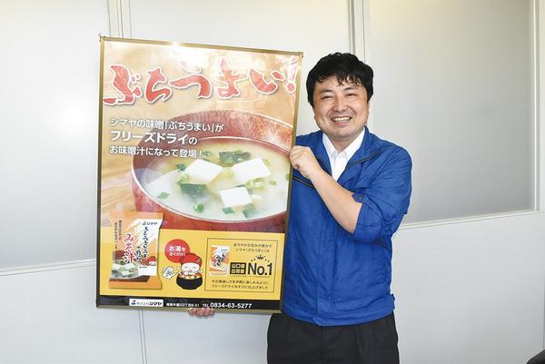 周南市都町に本社があるシマヤ(原田道太社長)は1890年創業のみそのメーカー。昨年3月、同社の麦みそ「ぶちうまいみそ」と「だしの素」を使ったフリーズドライ商品...
