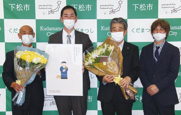 長年の花いっぱい運動に感謝 徳山花市場、花卉生産組合、花卉商組合 父の日を前に下松市長に花束贈る