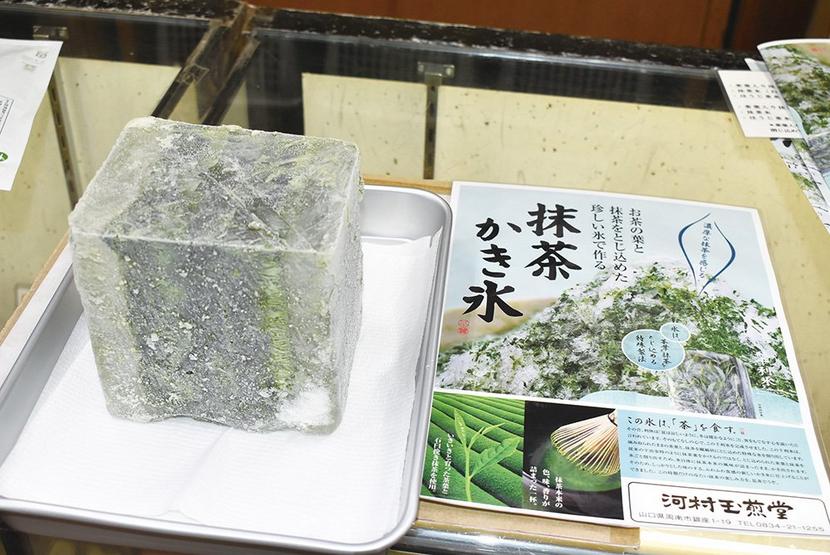 周南市銀座の河村玉煎堂が「抹茶のかき氷」を販売、早くも街の話題になっている。お茶の葉が入った氷のかき氷で、お茶の葉の香りと甘さを楽しめる。 同店はお茶の専...