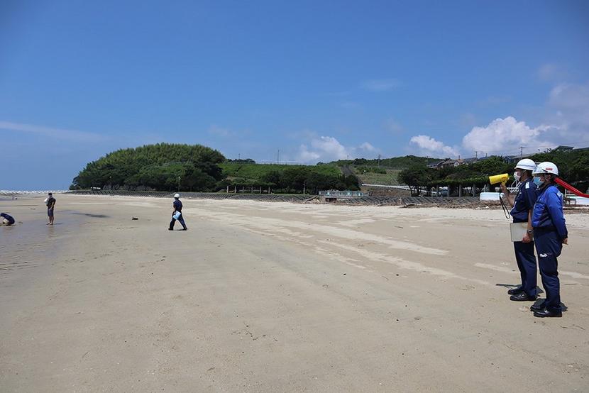 海の安全を呼びかける海上保安官ら