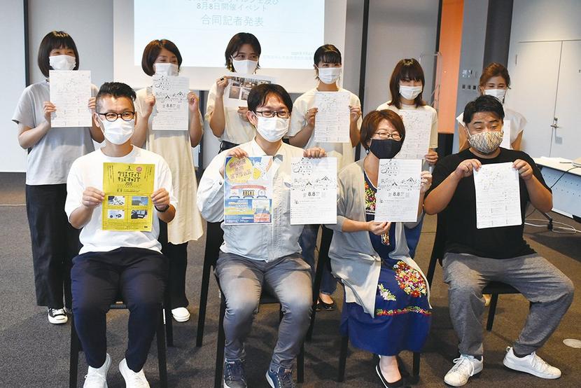 記者会見に臨んだスタッフ