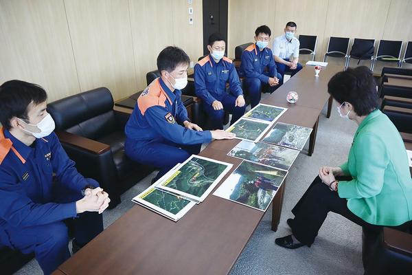 熊本豪雨の被災地に緊急消防援助隊山口県大隊の一員として派遣された周南市消防本部(藤井陽治消防長)の職員延べ40人が帰任し、17日、同市役所で代表4人が現地での...
