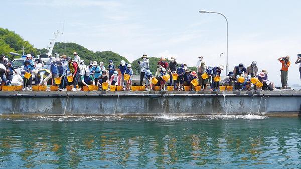 県釣り団体協議会(岡村晴義会長)の呼び掛けで18日、周南市の徳山湾の離島、大津島の刈尾で、海岸の清掃活動と稚魚の放流に島の住民と、中特グループ、ガールスカウト...