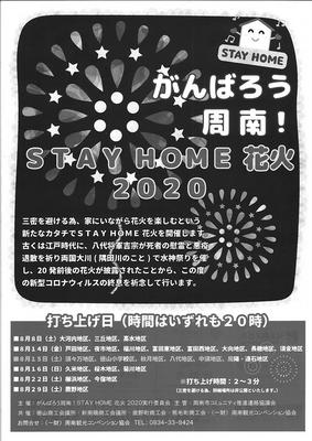 周南市の各地区で8日(土)から29日(土)まで花火を打ち上げる「がんばろう周南!STAY HOME花火2020」が23会場で開かれる。 新型コロナウイルス...