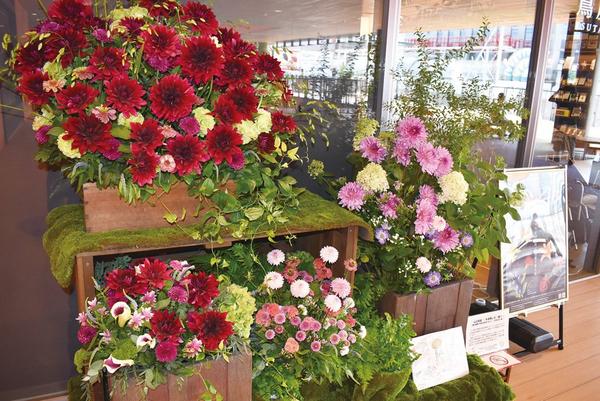 リンドウやヒマワリ 徳山駅の5カ所に花飾り 地元の夏の花が楽しませる