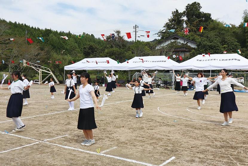 周南市八代の八代小(今田浩校長、9人)の運動場で20日、同校と隣の八代幼稚園(細野聖子園長、3人)の合同の秋季大運動会が開かれ、子どもたちと保護者、住民が秋空の...