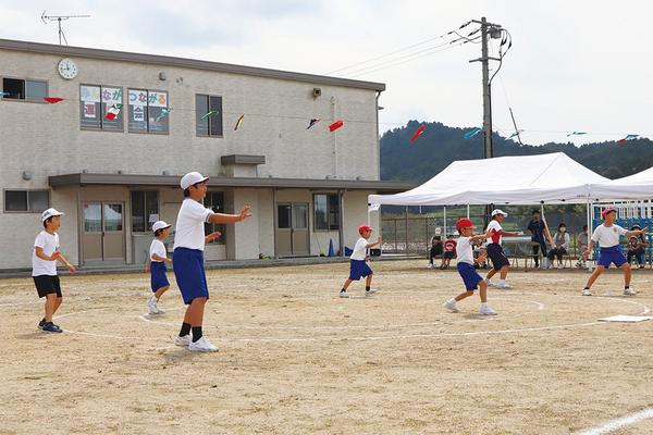 「みんながつながる運動会」 秋空の下で元気いっぱい 八代小・八代幼稚園合同