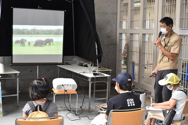 周南市の徳山動物園のゾウ舎で13日、こども環境学習講座「動物たちとの共存」が開かれ、小学生15人と保護者13人が参加した。マレー半島のアジアゾウが暮らしていた...