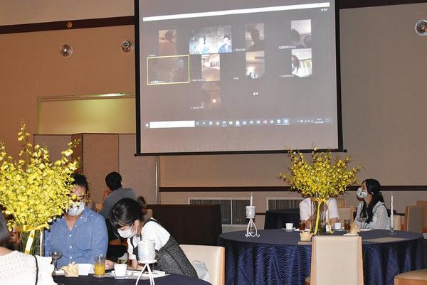 周南市の遠石会館は6日、秋のブライダルフェアを開き、遠隔地と披露宴会場を結ぶことができるリモート披露宴も紹介した。 この日は10組、20人のカップルが参加し...