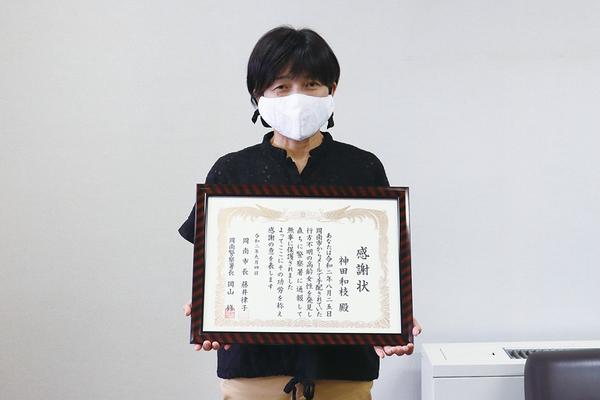 行方不明の高齢女性発見 神田さんに感謝状 市のメールサービスが決め手