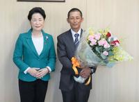 地域周南市9月のボートレーサー養成所の修了記念競走で見事優勝を飾り、11月2日にボートレース徳山でデビューする山口支部所属の清水愛海(あみ)選手(20)が26日、周南市役所で藤井市長を表敬訪問した。
