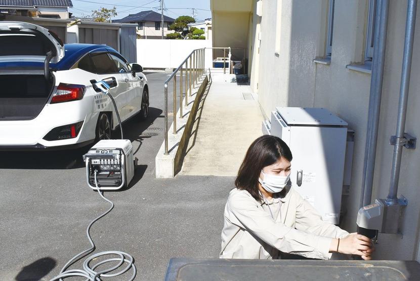 燃料電池車から電力 櫛浜市民センターへ供給 水素利用へ実証実験