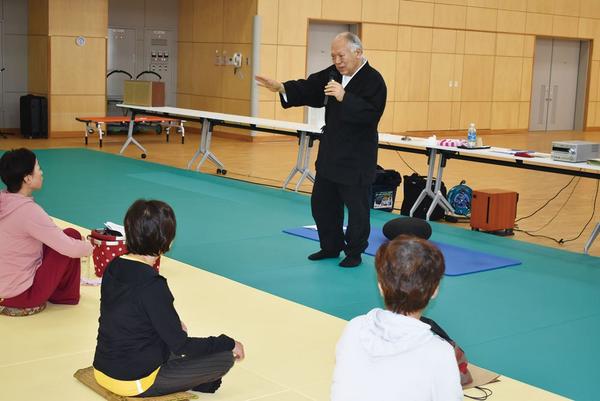 周南市の臨床心理士の刀根良典さんを講師にしたマインドフルネス健康づくり講座が19日、学び・交流プラザの武道場で開かれ、20人が瞑想の方法などを学んだ。 マ...