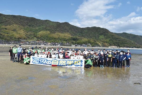 「海辺の自然学校in周南」が15日、周南市内の人工干潟で開かれ、海の近くにある鼓南小(菊野良校長、12人)と内陸部の湯野小(藤室恒一校長、38人)の全校生がア...
