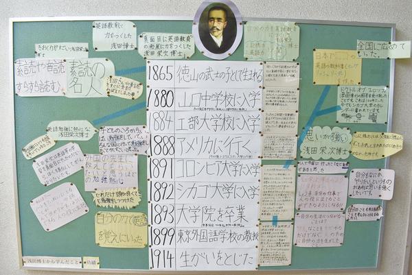周南市出身で、明治の日本の英語教育に大きな足跡を残した浅田栄次(1865-1914)の業績を紹介するコーナーが母校でもある徳山小(磯村勇校長、665人)に、徳...