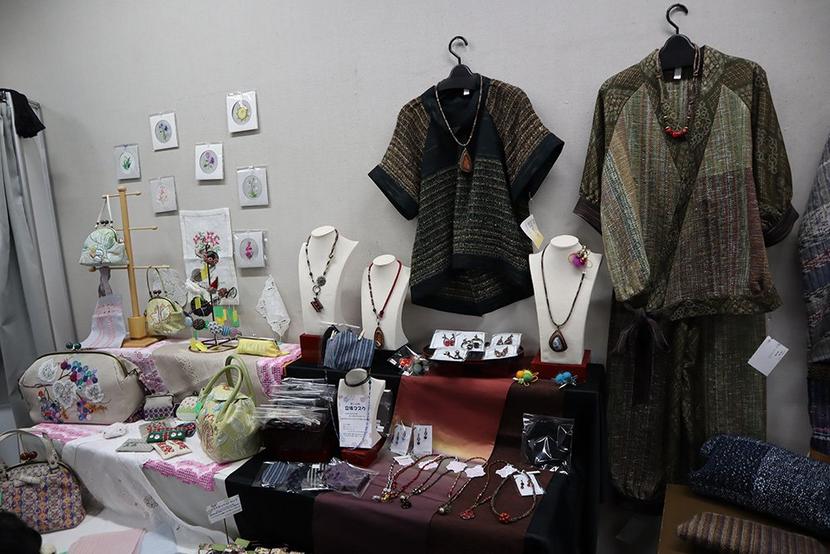 大隅睦子さんのさおり織り、福岡県の久留米絣(かすり)のブランド、儀右エ門と広島県福山市の備後絣、カスリラの製品300点を一堂に展示即売する「かすりとさをり」展...