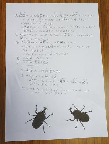 (右から)幼虫が入った容器を渡す古村社長、松並さん