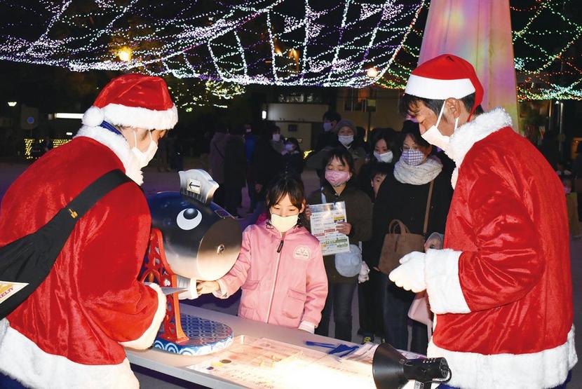 周南市の御幸通や青空公園で開かれている周南冬のツリーまつりは5日、イルミネーションクイズラリーがあり、150組の親子がクイズを解きながら会場を回った。御幸通の...