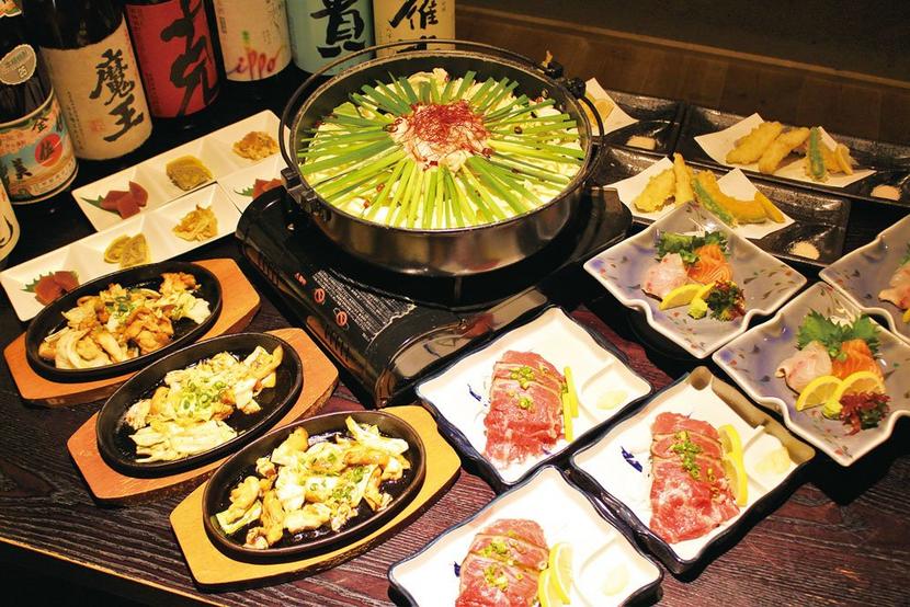 忘年会には、「克の宴会コース」がお勧め。小鉢、刺身、肉料理、揚げ物のほか、人気メニューの熊本産馬刺しと、オリジナルのだしを使ったしょうゆ仕立てのもつ鍋、鍋のしめのちゃんぽんがセットになっている。コースは3,500円で、人数は2人から。前日までに電話などで予約する。